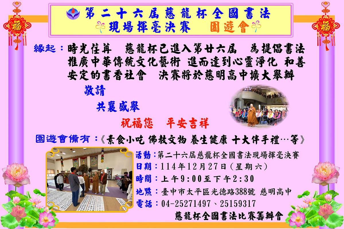 114年第二十六屆慈龍杯全國書法比賽辦法