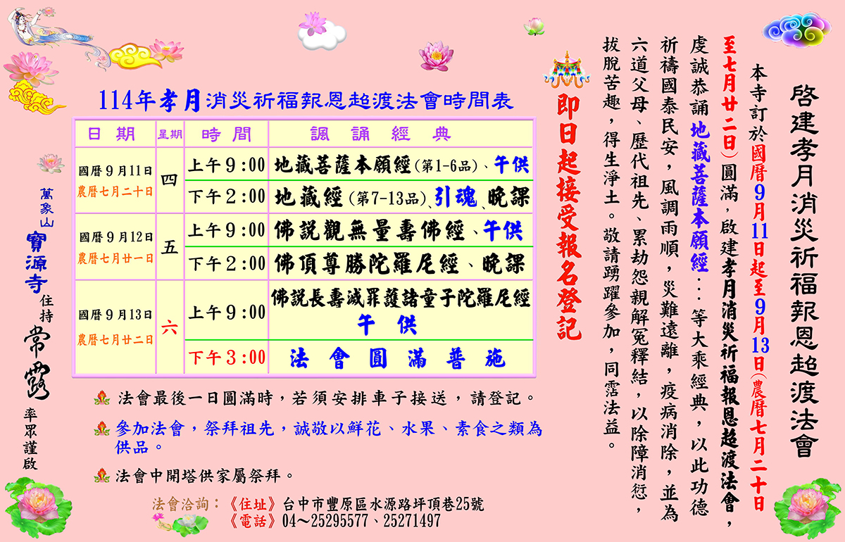 萬象山寶源寺114年孝月消災祈福報恩超渡法會