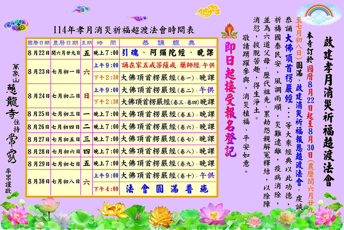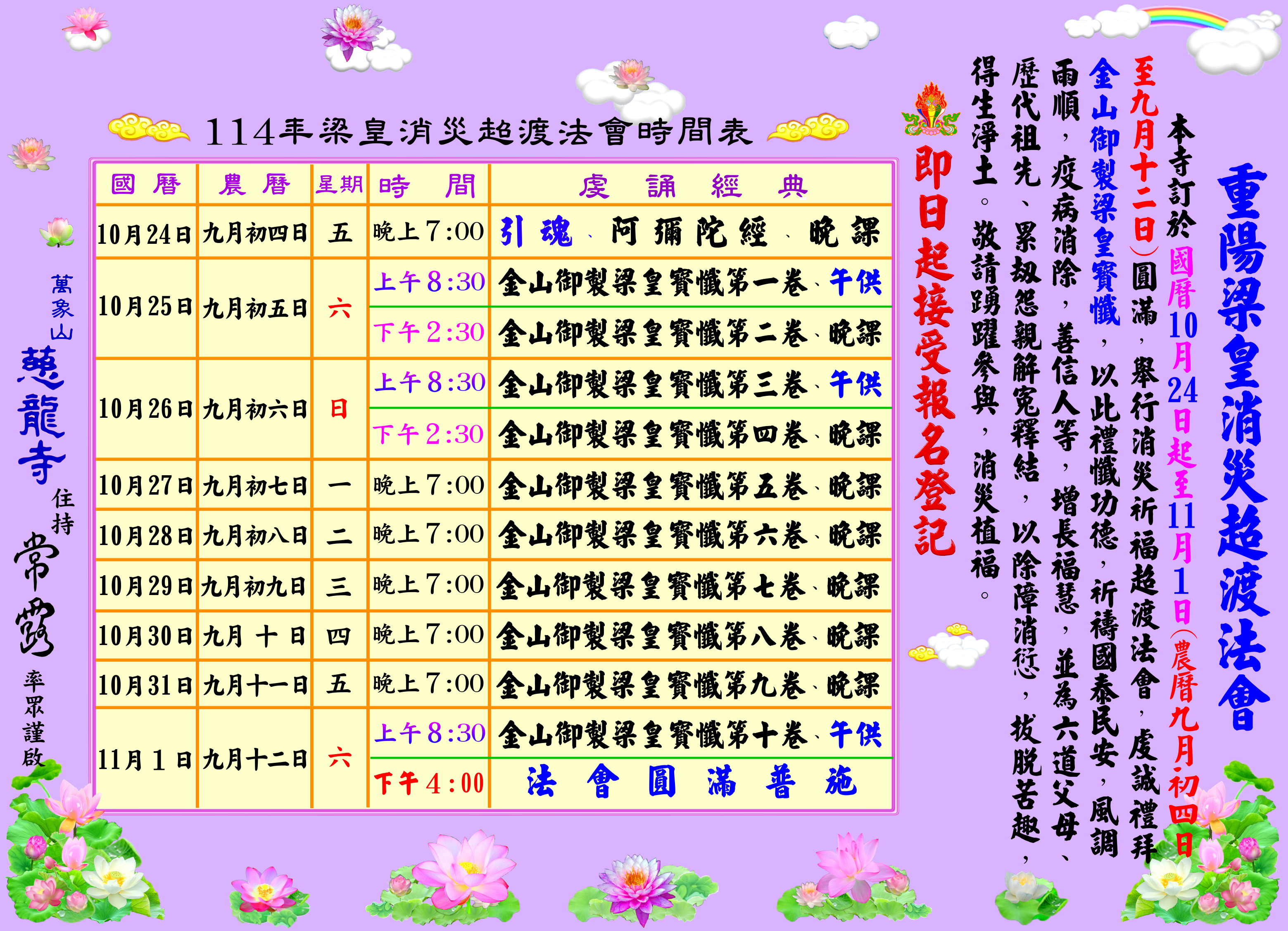 萬象山慈龍寺114年孝月消災祈福報恩超渡法會