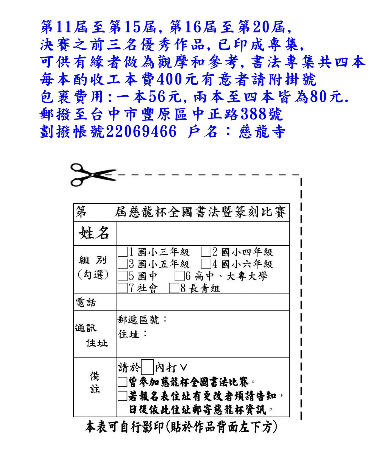 114年第二十六屆慈龍杯全國書法比賽辦法